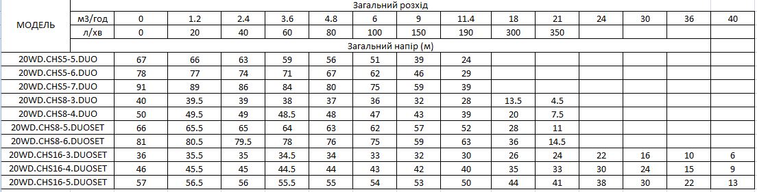 Технічні характеристики станцій підвищення тиску води (модельний ряд)